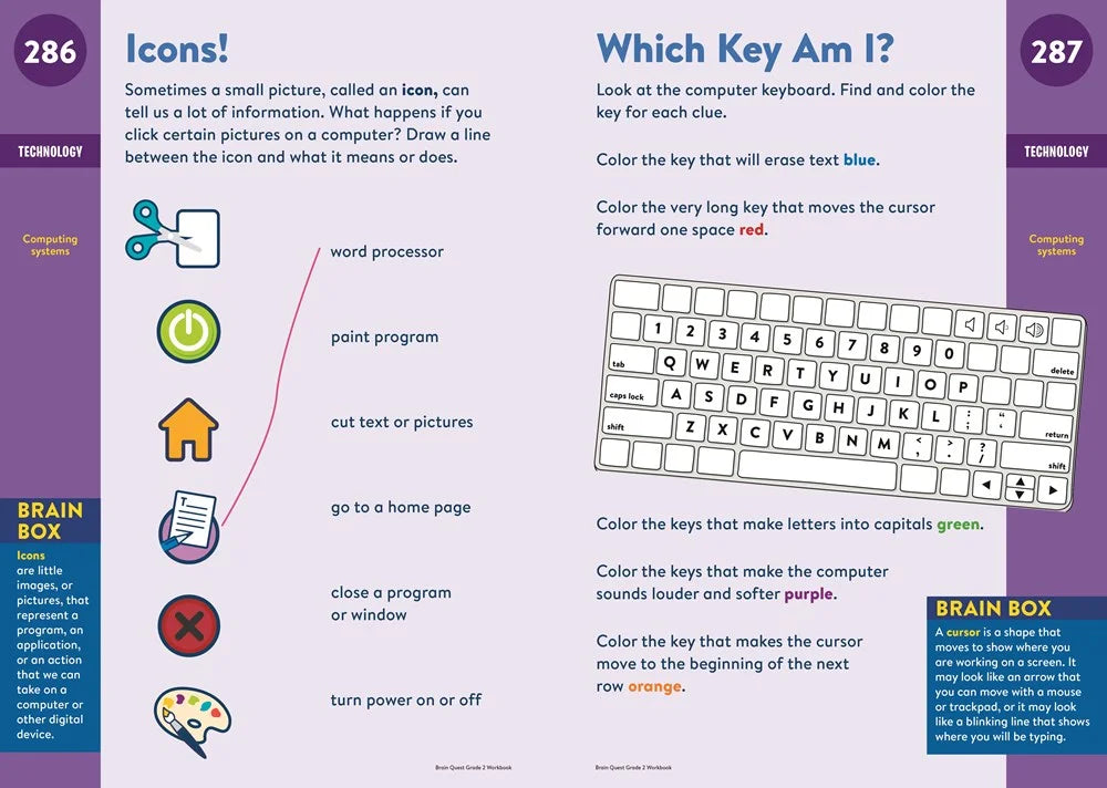 Loved by kids, teacher approved, and trusted by parents, Brain Quest Grade 2 Workbook reviews and reinforces what children are learning in the classroom in an instantly engaging, entertaining way. Each page is jam packed with fun activities, practice exercises, and games covering sentence building, addition and subtraction, fractions time and money, social studies, geography science, and much more.