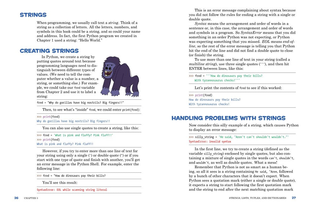 This book takes a playful approach to teaching programming, guiding beginners through the basics with engaging examples and humorous scenarios. Kids will learn to write code while experimenting with programs featuring everything from ravenous monsters to secret agents! New terms are clearly defined, code is color-coded for easy understanding, and brain-teasing puzzles reinforce learning. The book is packed with colorful illustrations that keep young programmers motivated and entertained.